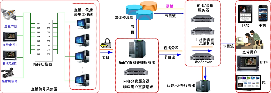 hjc888黄金城·(中国区)官方网站 高清网络视频直播系统支持摄像机、卫星电视、有线电视、数字电视等实时信号的采集收录、编码、存储和发布。系统采用B/S架构,不需要下载专用的客户端播放程序,支持完善的远程WEB管理,实现全程无人值守直播管理。
